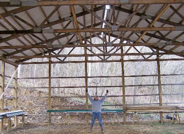 the ridge cap was in place, we could stand in the center of the barn on a rainy winter day,