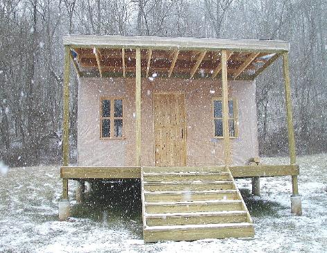 The cabin rests on twelve concrete pillars that we set at least twenty four inches deep in the